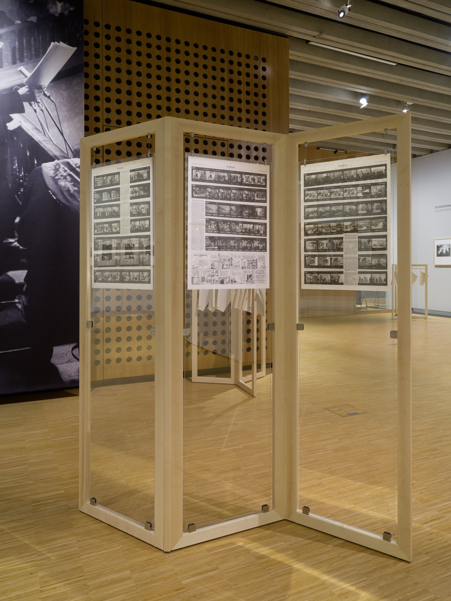 Um die erzählerischen und atmosphärischen Fotos von Barbara Klemm optimal zur Geltung zu bringen, wurde eine klare, zurückhaltende Ausstellungsarchitektur entwickelt. Auf Wandtexte wurde verzichtet, um die Konzentration auf die Fotos nicht zu beeinträchtigen. Stattdessen wurden Hand-outs mit Texten eingesetzt, die an Holzrahmen präsentiert wurden. Teilweise wandfüllende Vergrößerungen von Fotos dienten der Strukturierung der inhaltlichen Kapitel und boten Blickfänge durch den Raum.