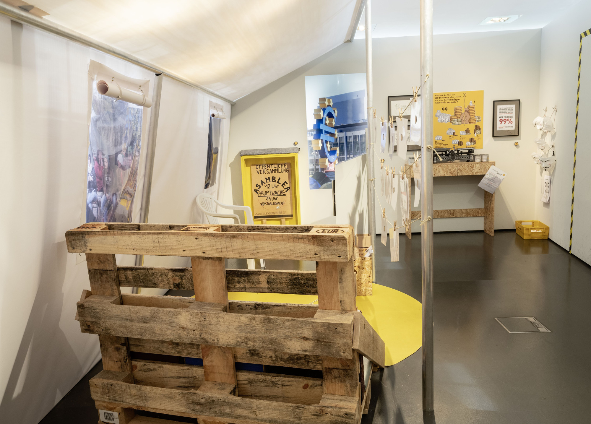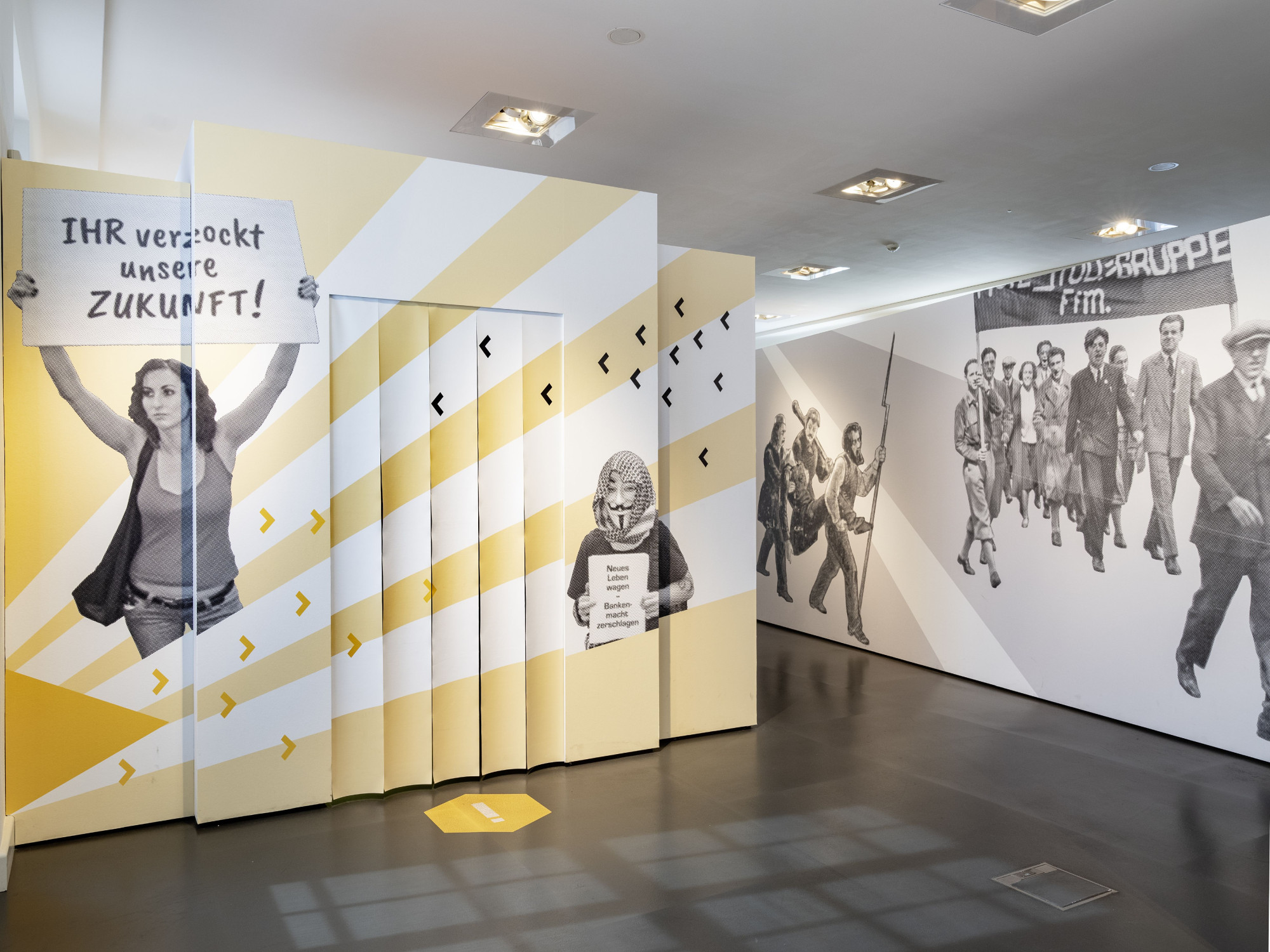 Revolutionen, Protestbewegungen, Empörung über Ungerechtigkeiten, Auflehnung gegen Bevormundung – das waren die Themen dieser Ausstellung im Jungen Museum Frankfurt. In vier historisch gestalteten Räumen erleben die Besucher:innen verschiedene bedeutsame Zeiträume und Ereignisse: die Wahl zur Nationalversammlung 1848, die Revolution am Ende des Ersten Weltkriegs im November 1918, die Auseinandersetzung um den Bau der Startbahn 18 West 1980 und das Occupy Camp vor der Europäischen Zentralbank 2011/12.