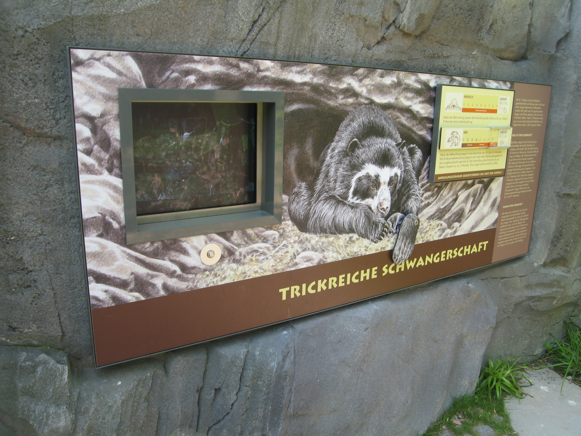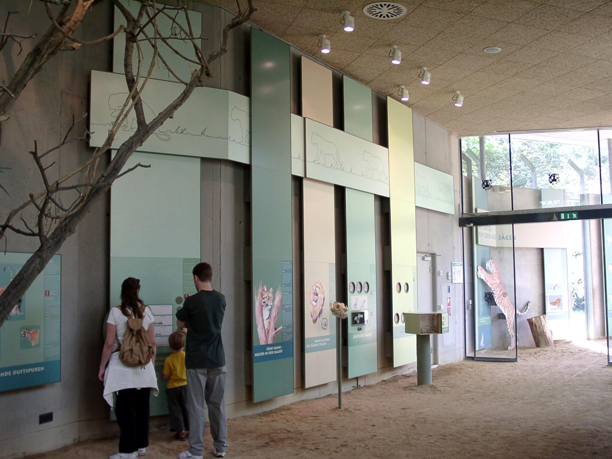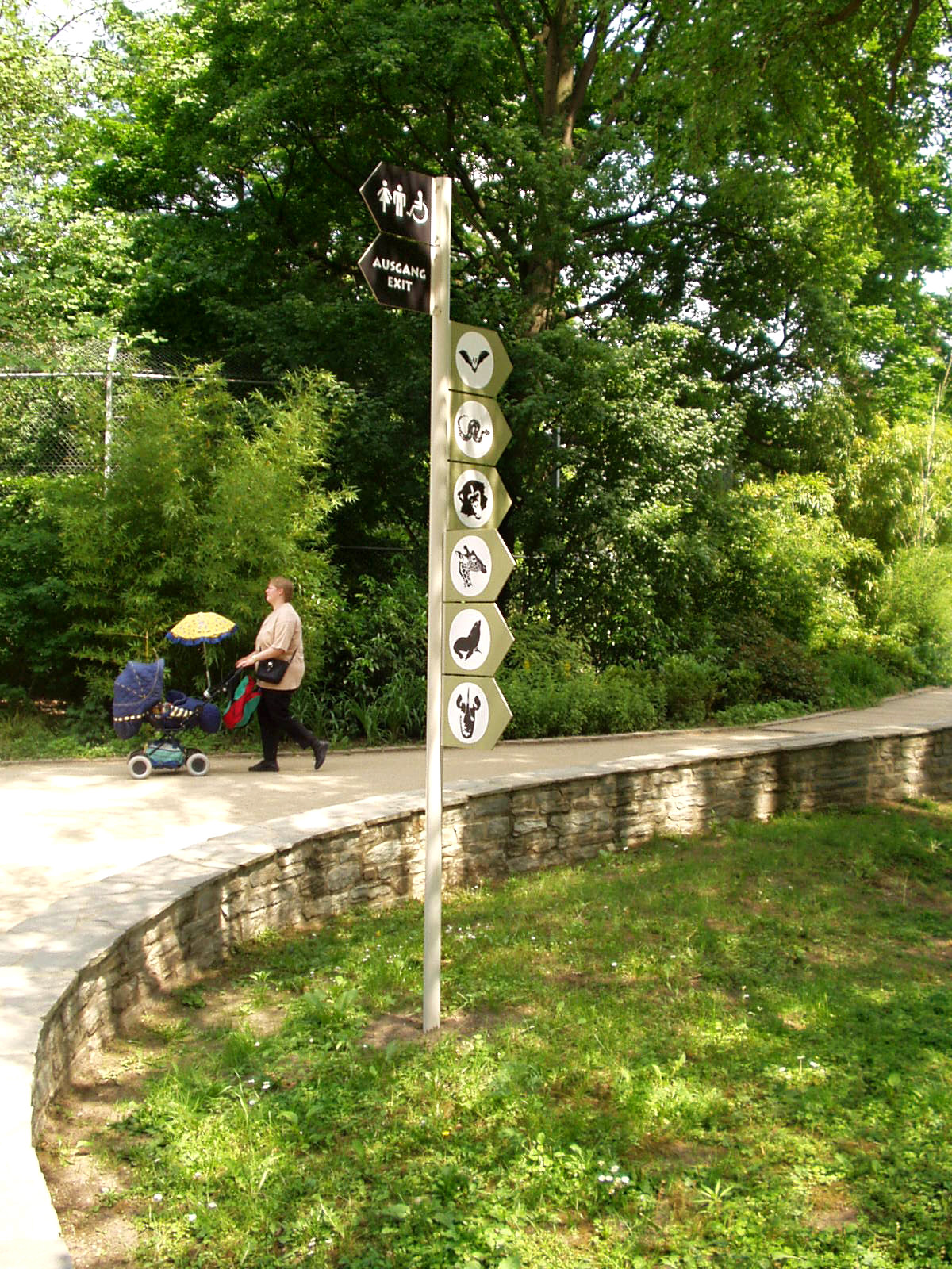 Da die Informationssysteme in verschiedenen zeitlichen Etappen entwickelt wurden – vor allem im Zusammenhang mit der Neuentwicklung von Tierhäusern und -anlagen – musste von Beginn an ein grafisches Konzept sowie ein Ausstellungssystem entwickelt werden, das universell im ganzen Zoo einsetzbar ist und das Corporate Design unterstützt.