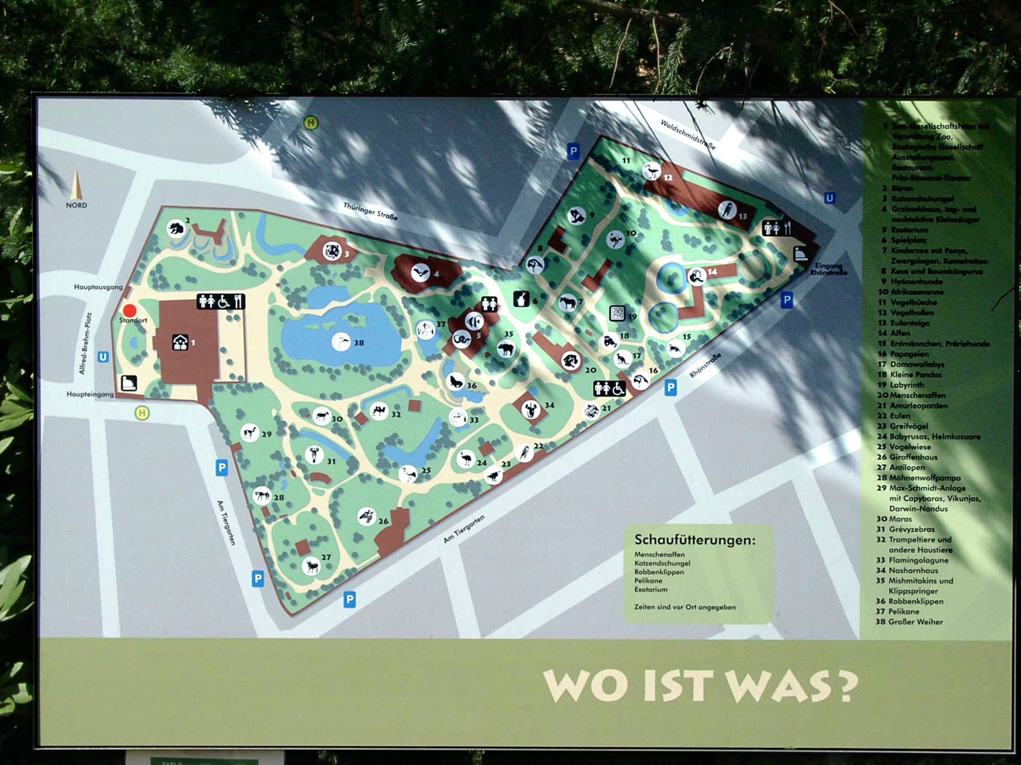 Seit dem Jahr 2000 haben wir gemeinsam mit der Zoopädagogin ein Informationssystem für den Zoo Frankfurt entwickelt. Es umfasst Tafeln, die über den Körperbau, das Verhalten und die Lebensräume der Tiere sowie über Naturschutzthemen informieren. Die Tafeln werden mit interaktiven Objekten kombiniert, die komplexe Zusammenhänge auf spielerische Weise veranschaulichen. Die Besucher:innen können konkrete sinnliche Erfahrungen sammeln und anhand kleiner eigener Experimente Antworten auf gestellte Fragen finden.