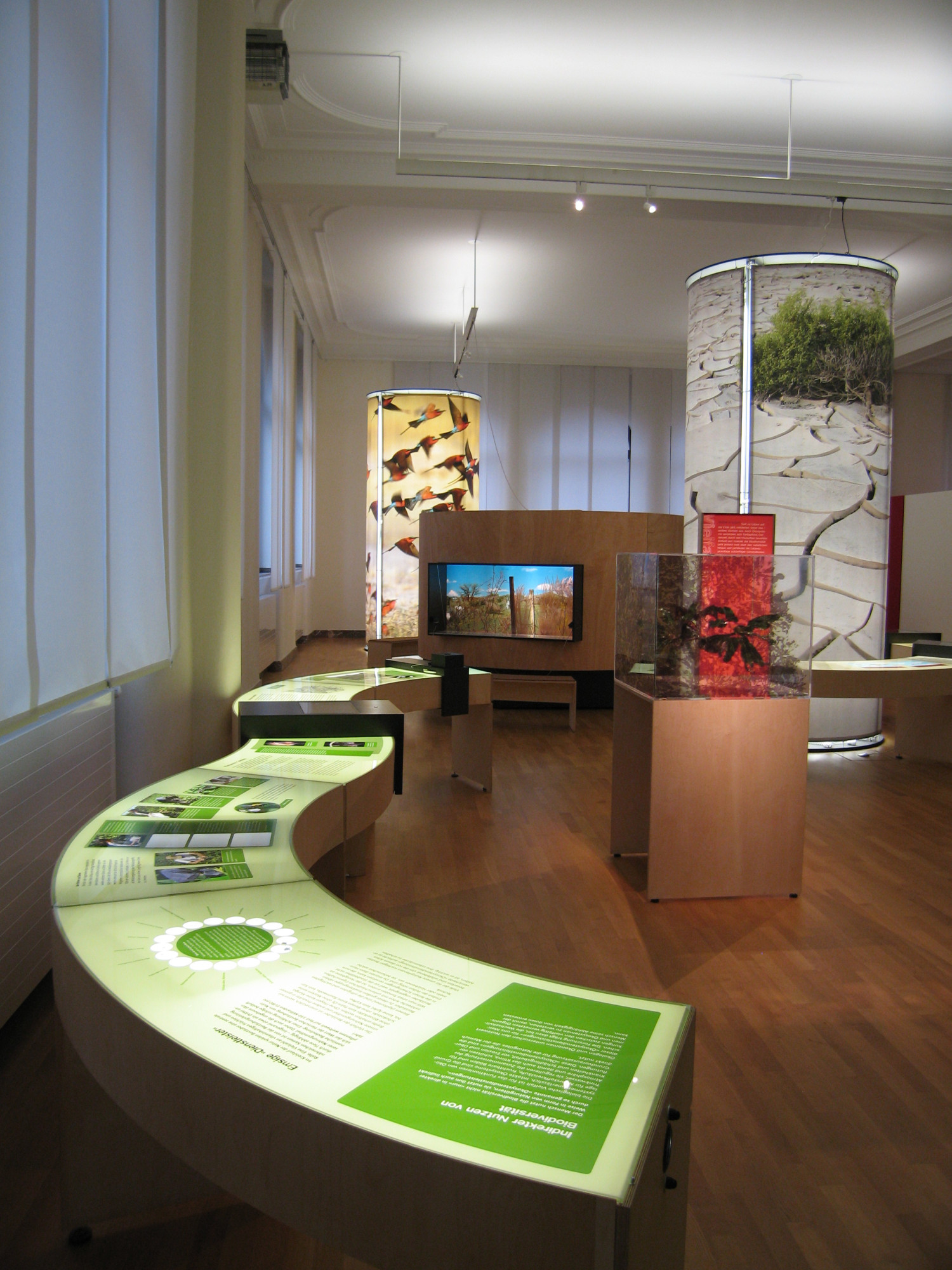 Die Wanderausstellung „Afrikas Reichtum – Biodiversität erforschen, nutzen und erhalten” präsentiert die Ergebnisse des umfangreichen Forschungsprojekts BIOTA-Afrika. Die Vielfalt der Arten und ihr Wert für uns Menschen sind die zentralen Themen der Ausstellung, ebenso wie die Frage nach ihrer Erhaltung. Große Leuchttürme dienen im Raum als Stationsanzeiger der einzelnen Themenbereiche. Leuchtende Bänder aus aneinandergereihten Pulten ranken sich um die Stationen und informieren über die jeweiligen Inhalte. Interaktive Objekte und Dioramen veranschaulichen den Besuchern die speziellen Themen und bieten ihnen die Gelegenheit, sich einzelnen Aspekten intensiver zu widmen. Nach ihrem ersten Aufenthalt in Bonn bis zum 8. Juni 2008 wurde die Ausstellung an weiteren Orten in Afrika präsentiert.