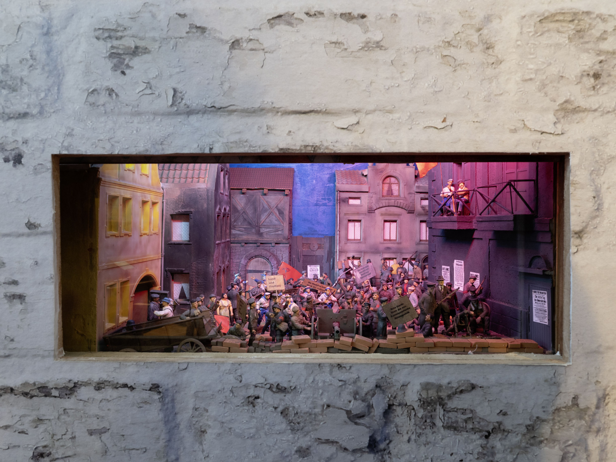 Revolutionen, Protestbewegungen, Empörung über Ungerechtigkeiten, Auflehnung gegen Bevormundung – das waren die Themen dieser Ausstellung im Jungen Museum Frankfurt. In vier historisch gestalteten Räumen erleben die Besucher:innen verschiedene bedeutsame Zeiträume und Ereignisse: die Wahl zur Nationalversammlung 1848, die Revolution am Ende des Ersten Weltkriegs im November 1918, die Auseinandersetzung um den Bau der Startbahn 18 West 1980 und das Occupy Camp vor der Europäischen Zentralbank 2011/12.