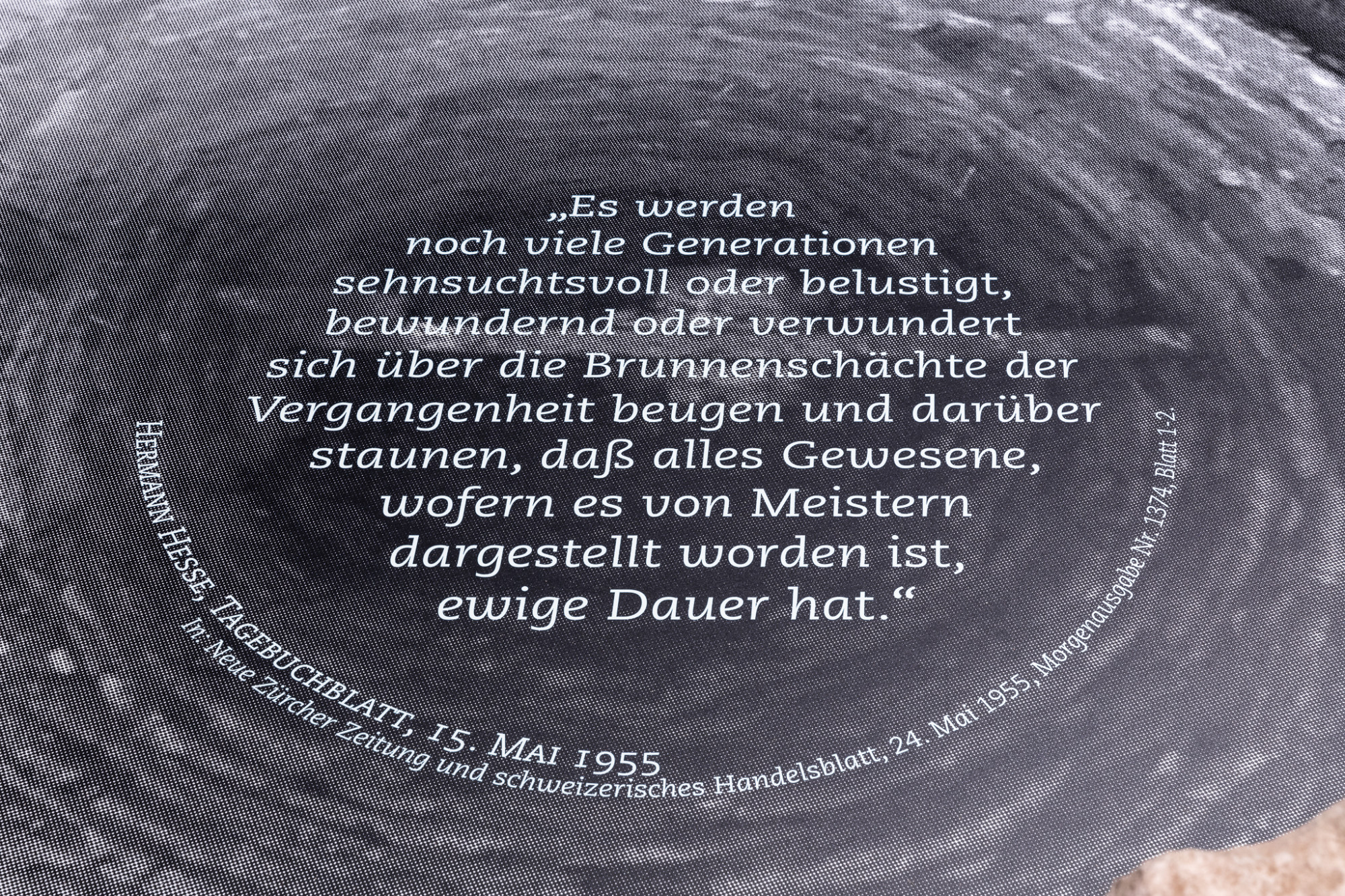 Die Ausstellungsarchitektur orientiert die sich im Grundriss an den Bogensegmenten eines Brunnens, die gebogenen Wände sind hintereinander gestaffelt. Im Zentrum befindet sich eine Projektion, in der die Besucher:innen das Abseilen in die Tiefe des Brunnens nachvollziehen können. Hierfür wurden Originalaufnahmen aus dem Brunneninneren zu einer Filmsequenz animiert.