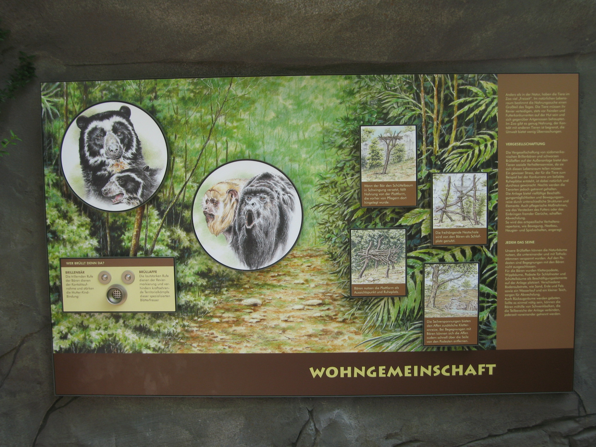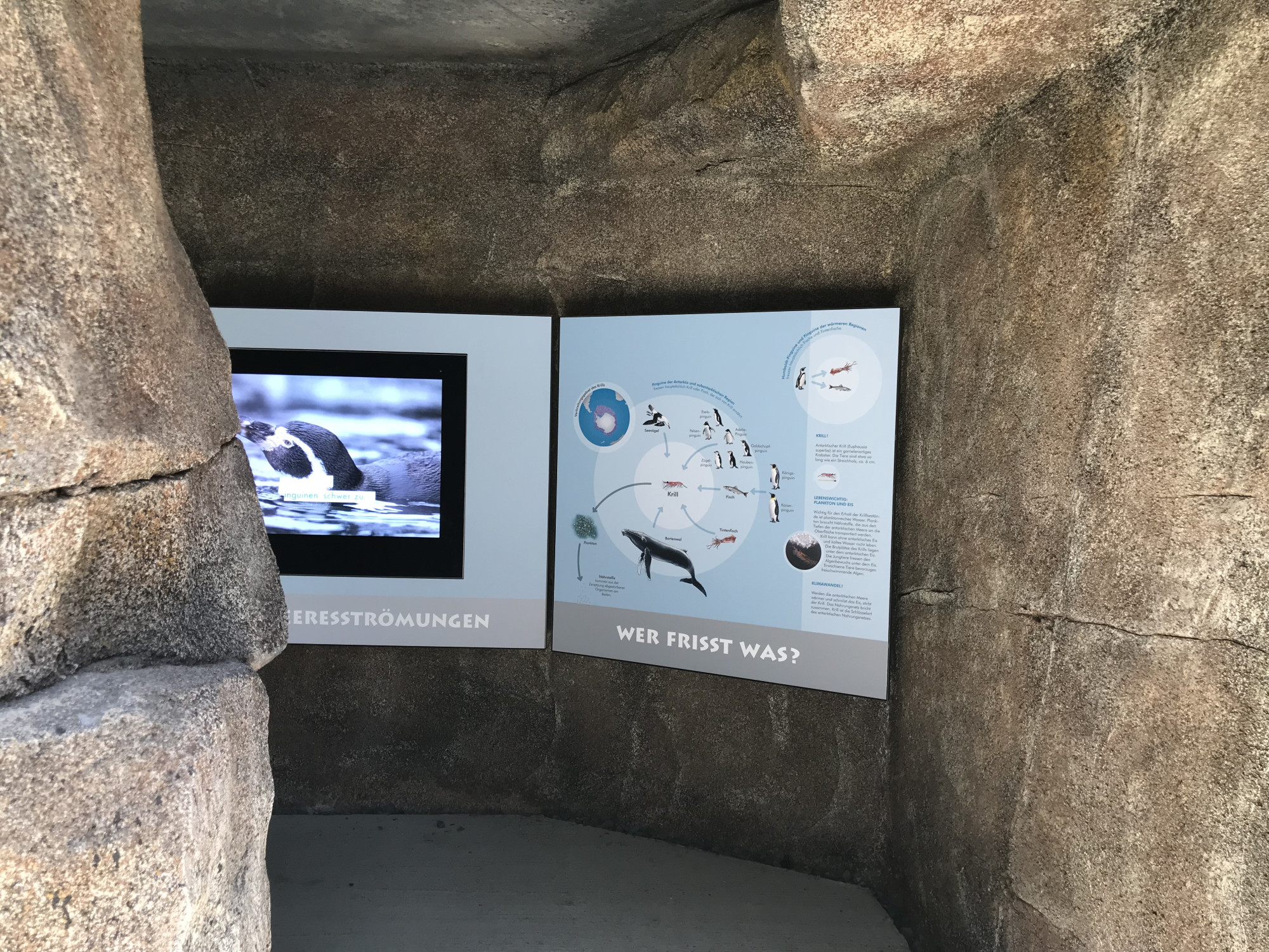 Da die Informationssysteme in verschiedenen zeitlichen Etappen entwickelt wurden – vor allem im Zusammenhang mit der Neuentwicklung von Tierhäusern und -anlagen – musste von Beginn an ein grafisches Konzept sowie ein Ausstellungssystem entwickelt werden, das universell im ganzen Zoo einsetzbar ist und das Corporate Design unterstützt.